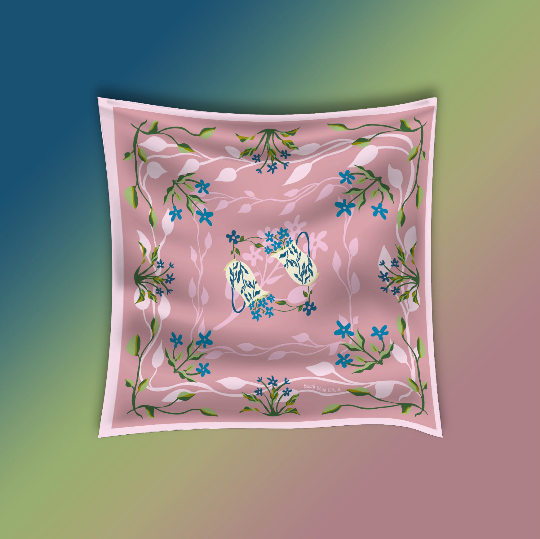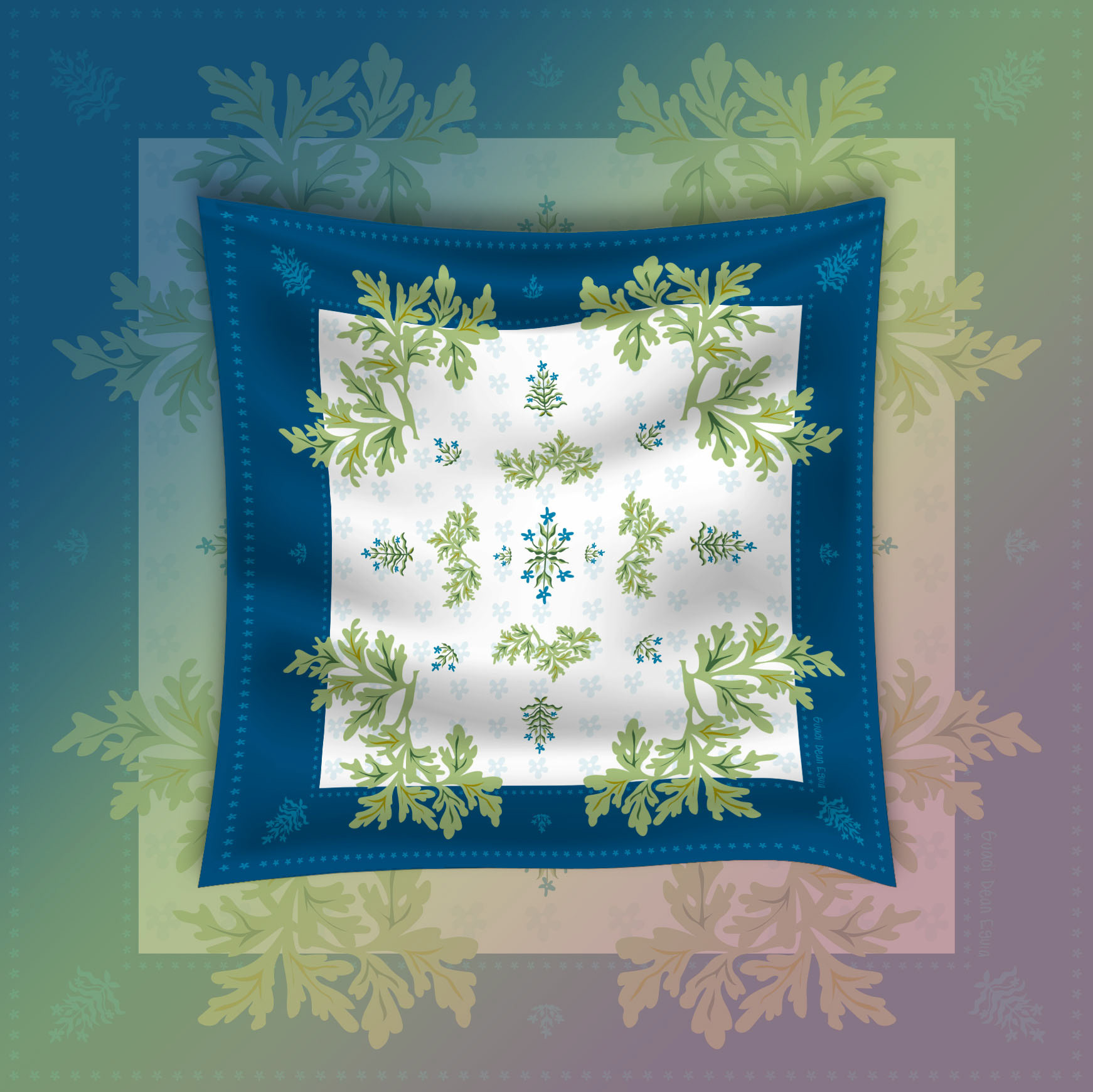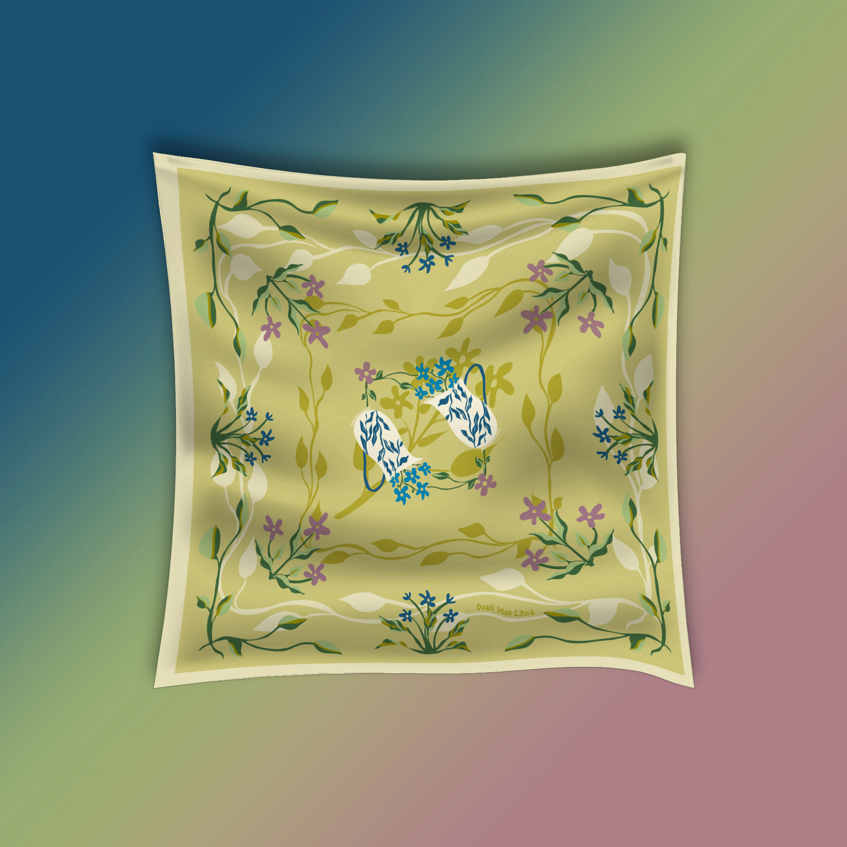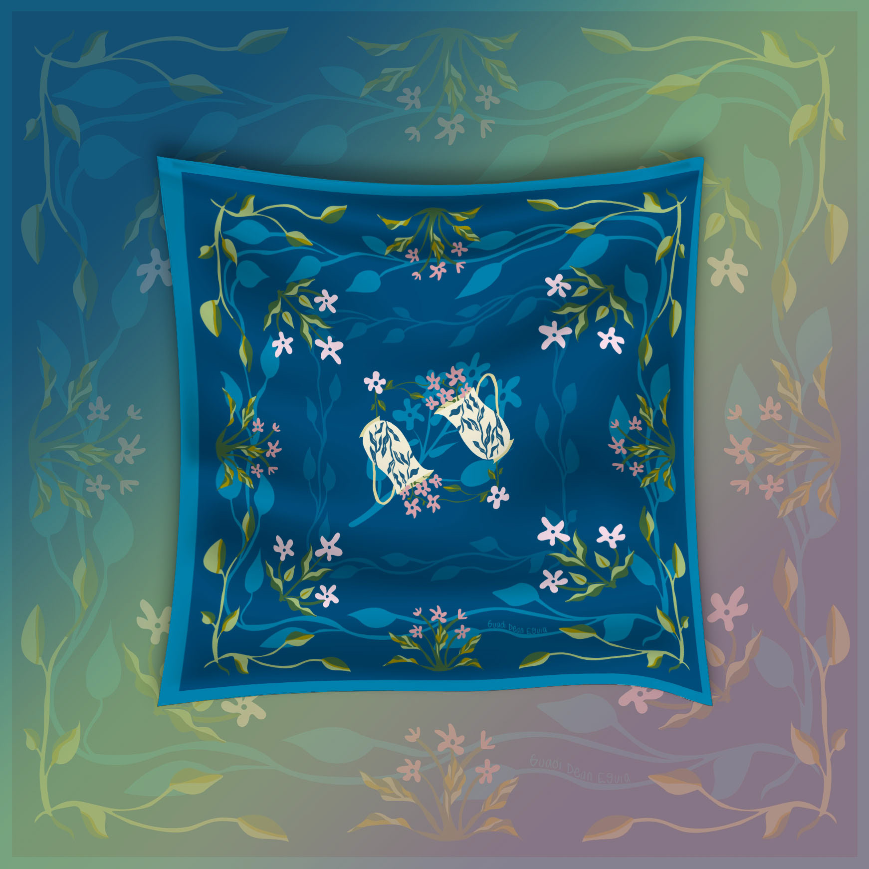 scarf design with art nouveau illustrations
