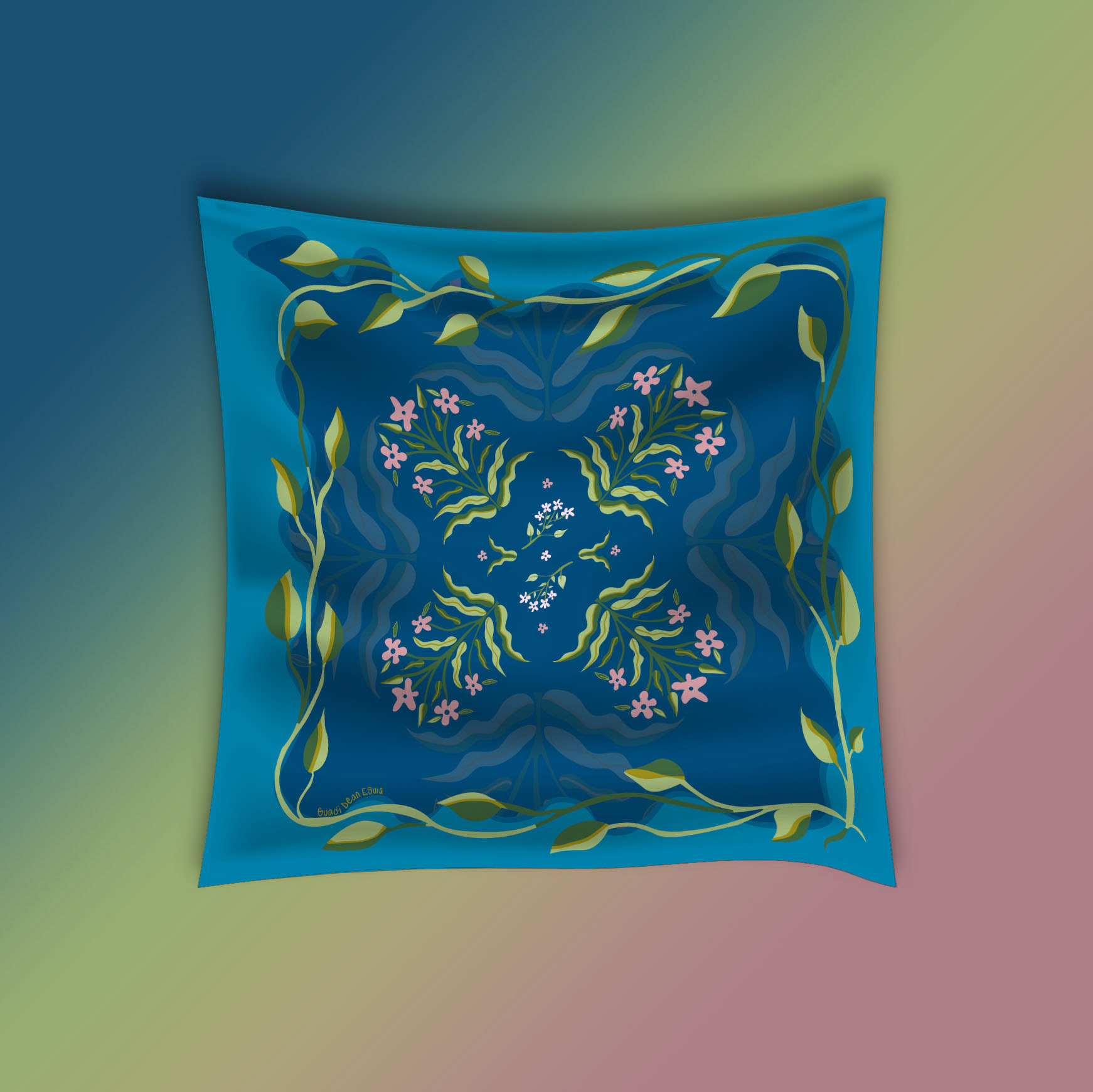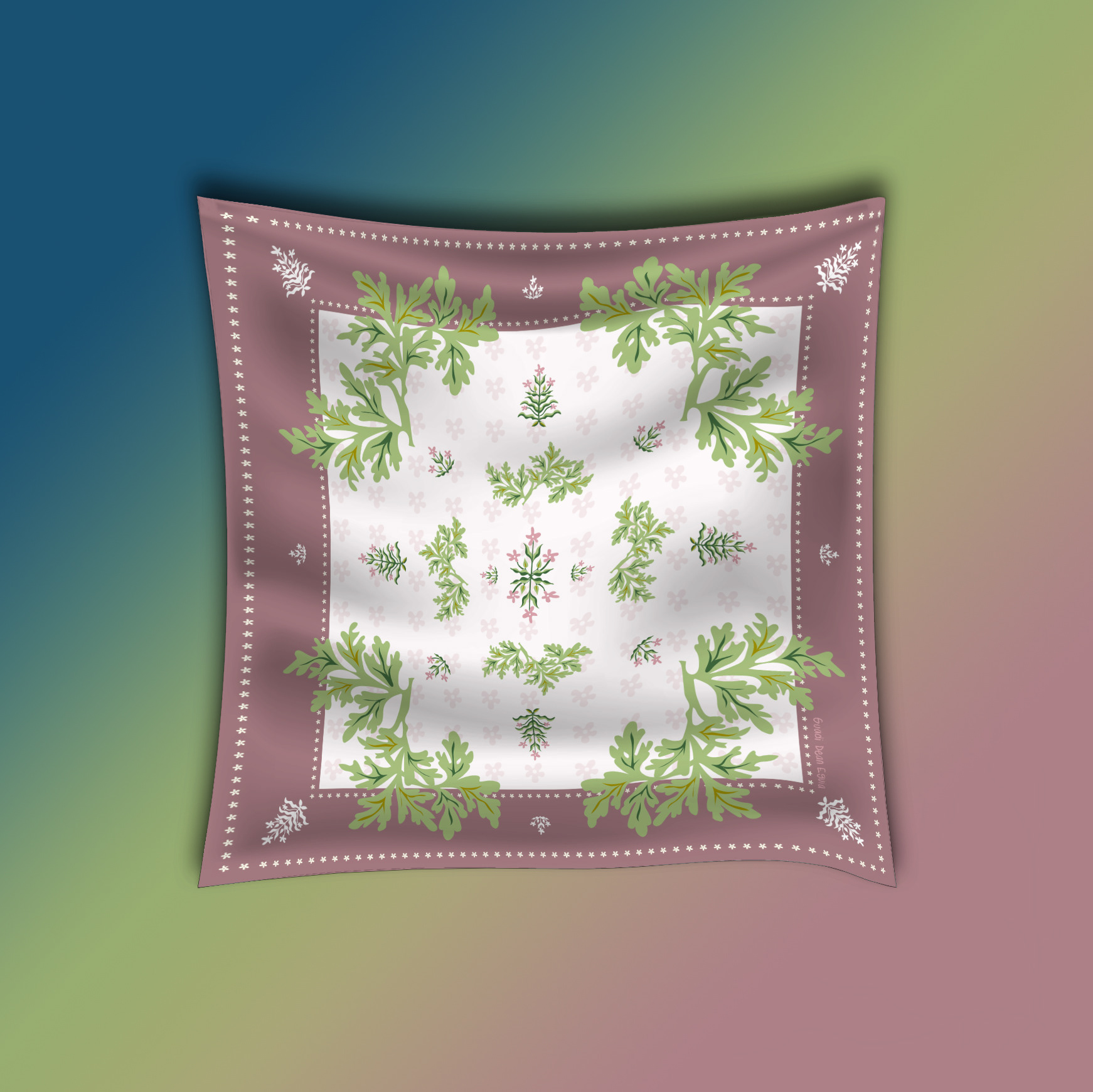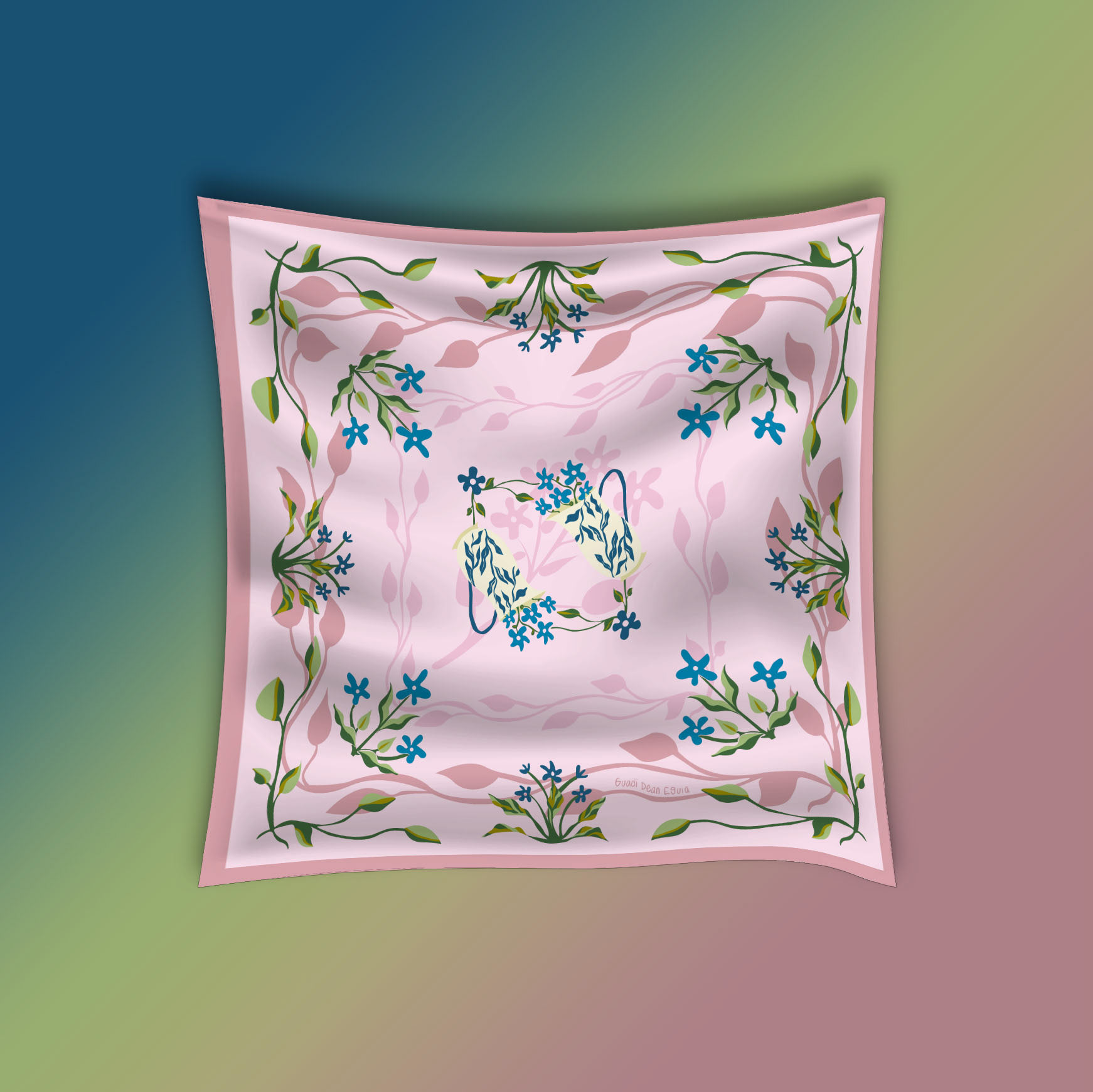 scarf design with art nouveau illustrations