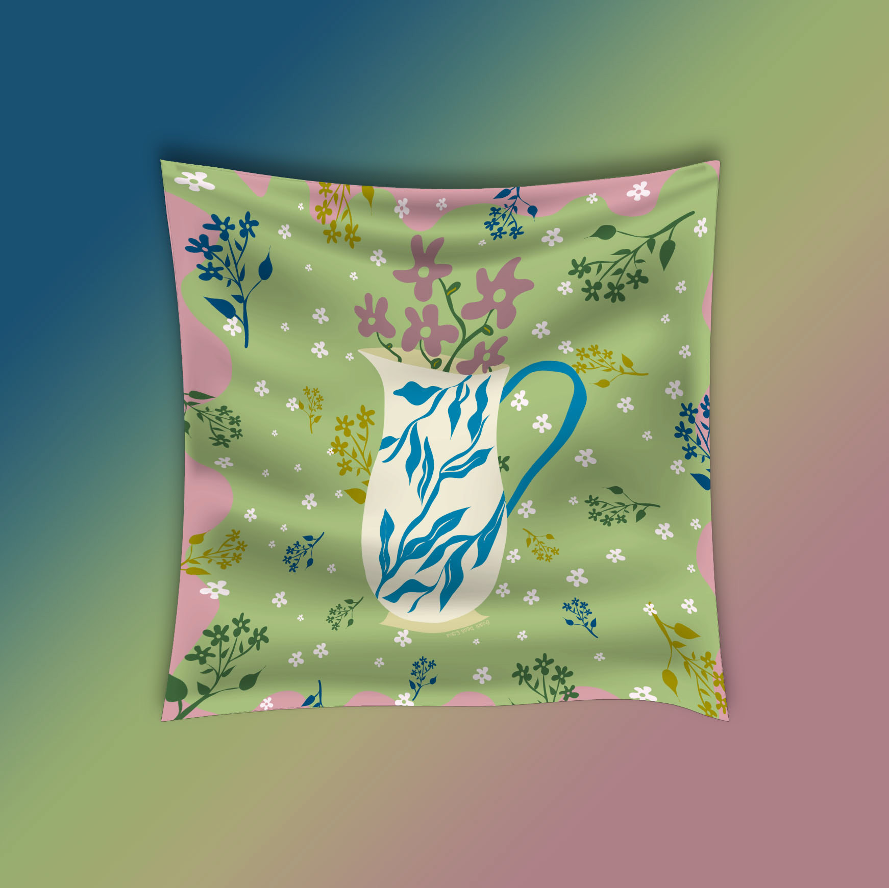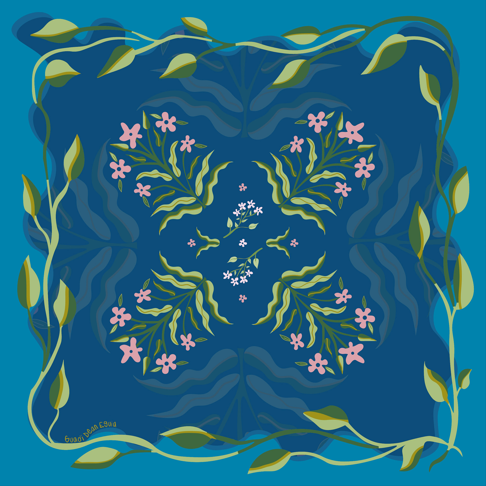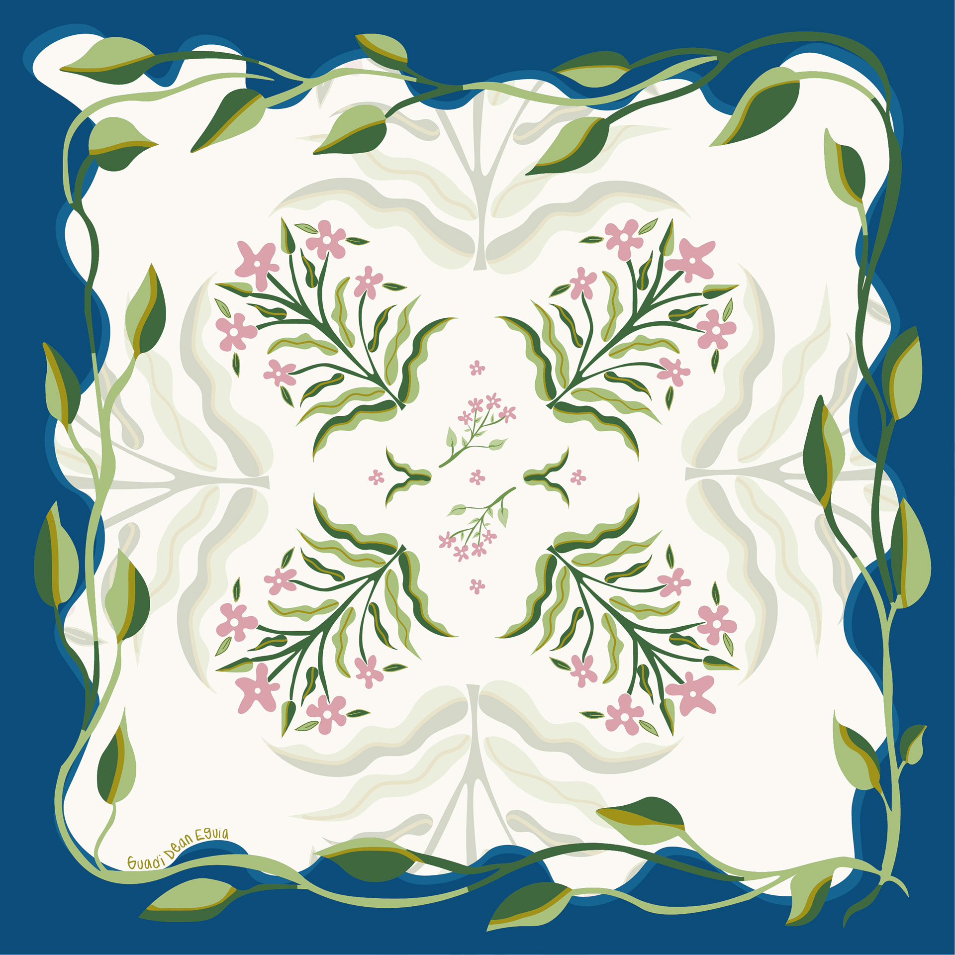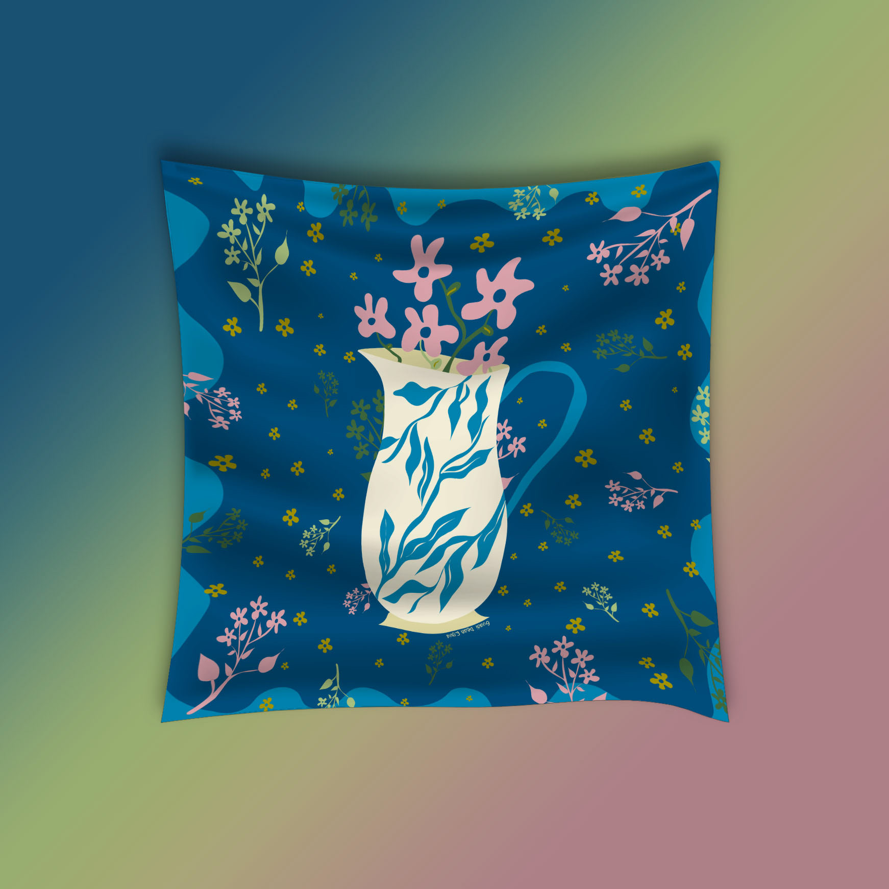 scarf design with art nouveau illustrations